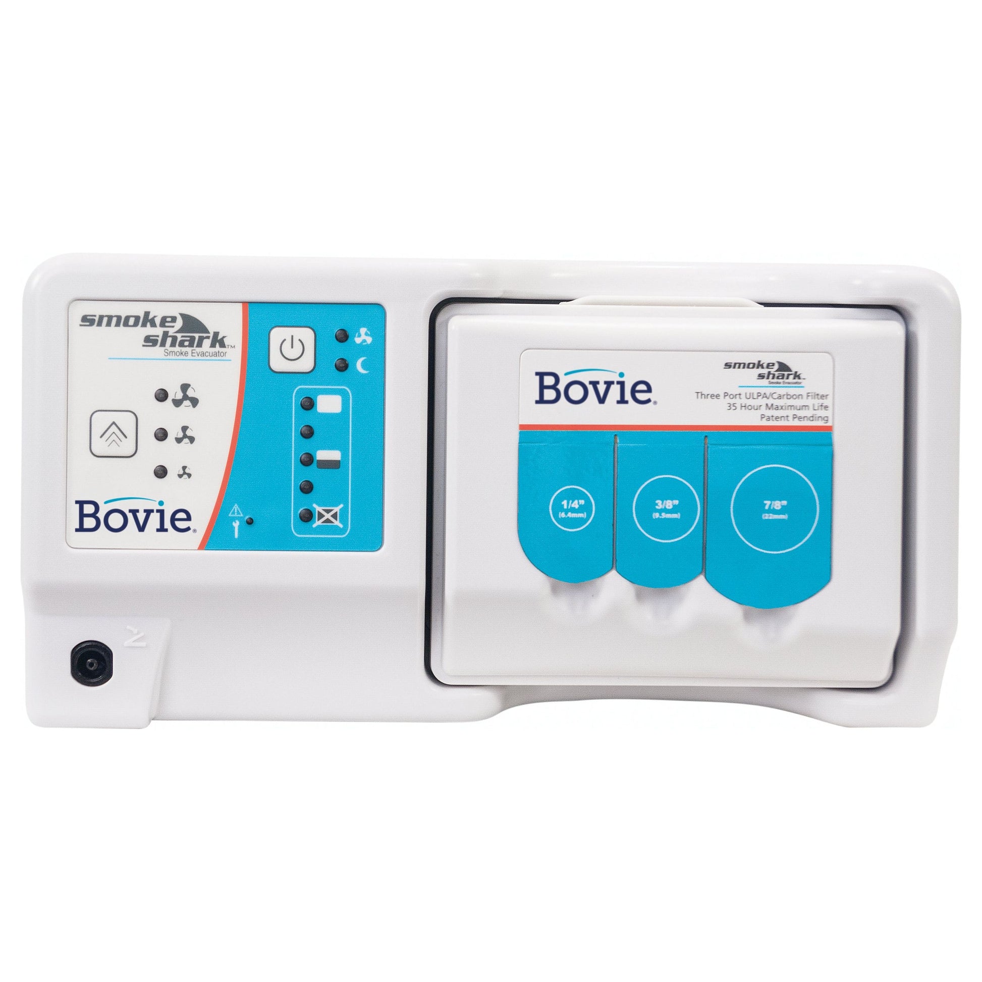 Effective smoke and particulate removal A modern, light-weight, compact design allowing for simplified use, storage and stack-ability The SF35 Extended-Life Filter offers up to 35 hours of performance reducing procedure cost by ~38% from the previous model, when used at the lowest setting. Covered 3-port filter design accommodates a variety of tubing sizes [1/4″(6.4mm), 3/8″(9.5mm), and 7/8″(22mm)] providing versatility in procedure and accessory setup The ultra-quiet design offers the same excellent performance with less noise 99.999% Efficient Particulate Capture.