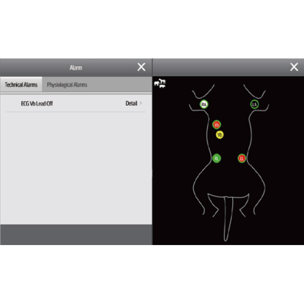 - Smart lead-switch & visible alarm: Automatically switches to an available lead if the main ECG lead detaches; one click identifies the detached lead.