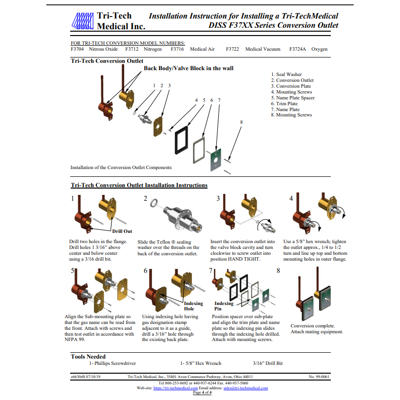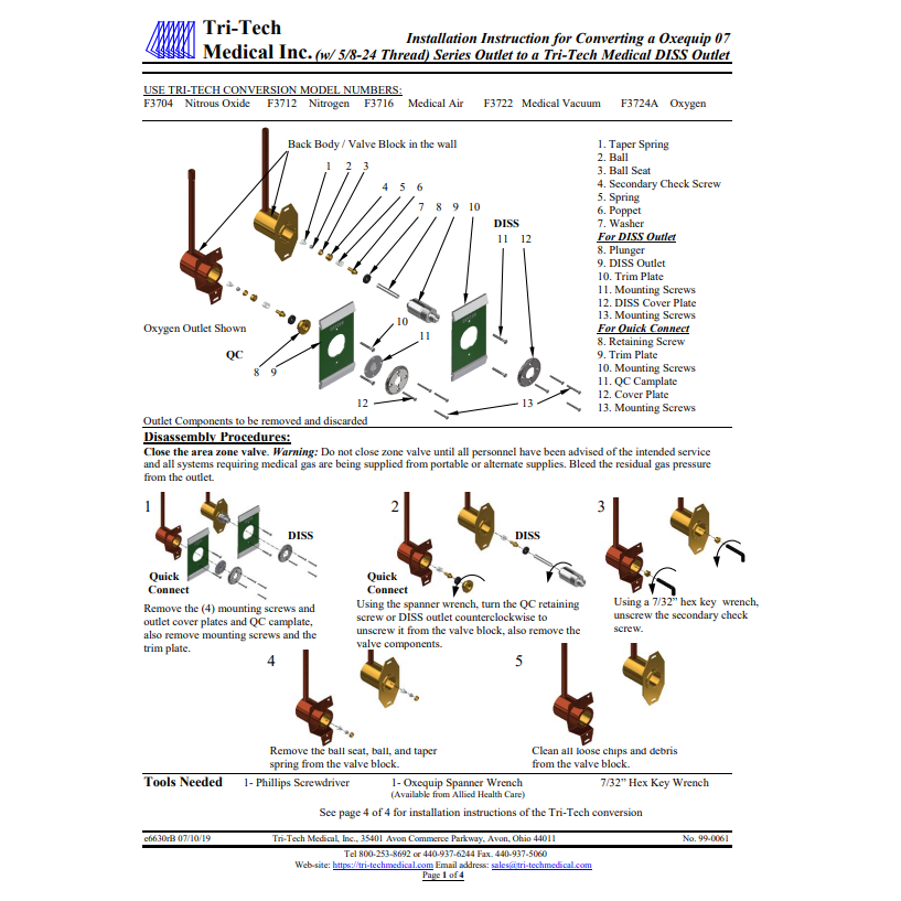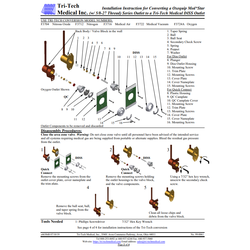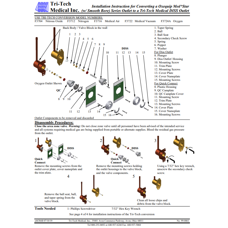 Tri-Tech Conversion Outlet From Oxequip 07, Medstar 5/8-27 & Medstar Smooth Bore to DISS, Medical Air, F3716