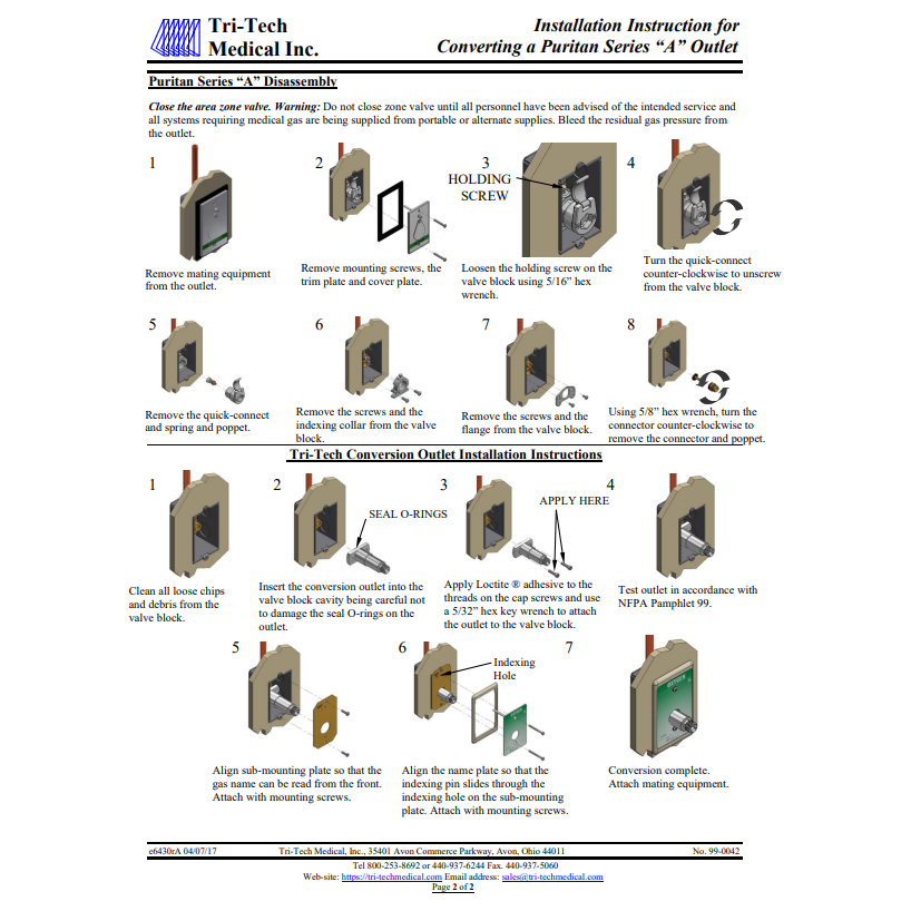 Tri-Tech Conversion Outlet From Puritan "A" series to DISS, N2O, F3504